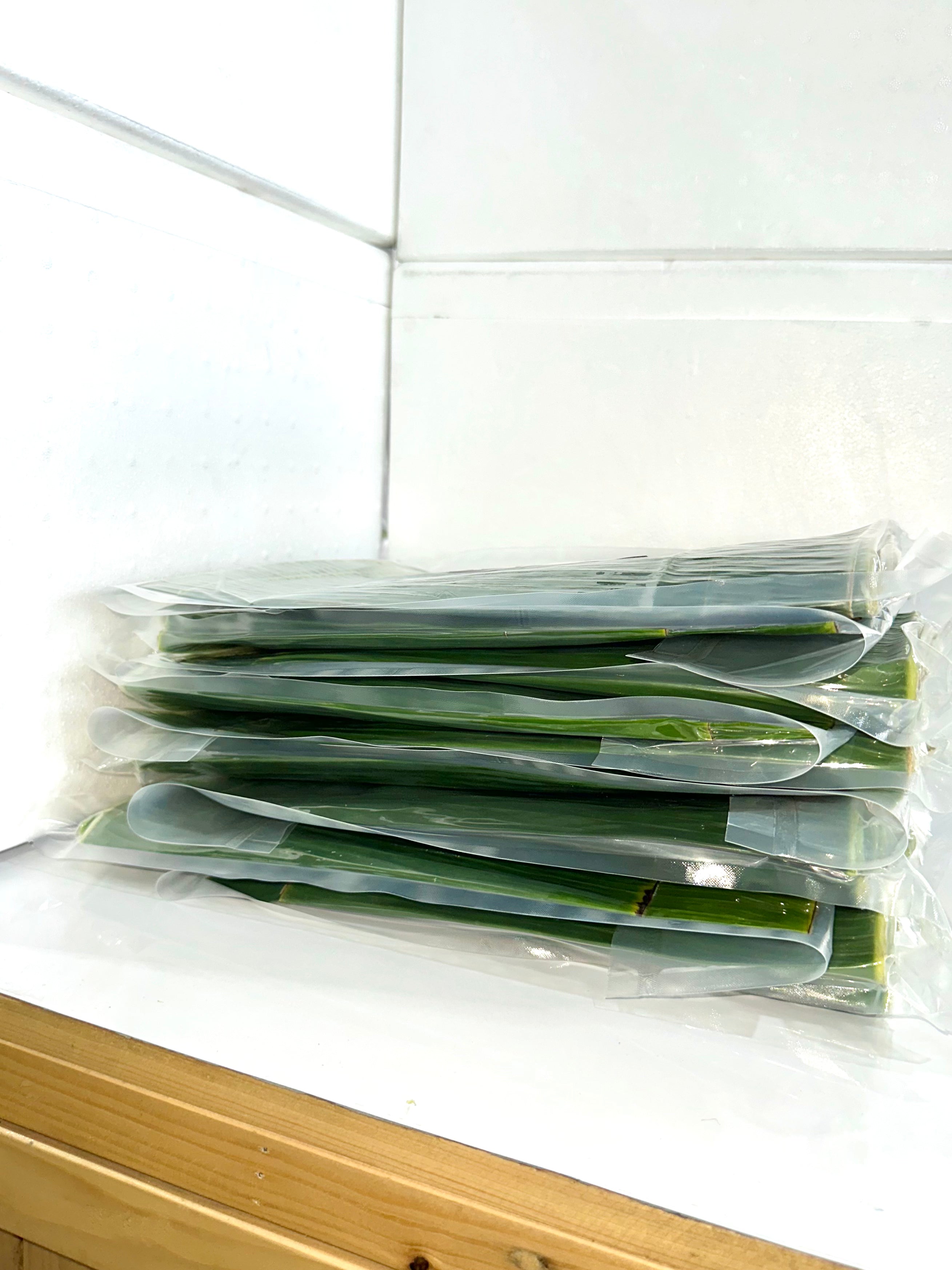 Vacuum-sealed, Fresh Premium Quality Banana Leaves stored at refrigerated temperatures can stay fresh for up to 2 weeks. 1 kg per pack, 10 kg per box.