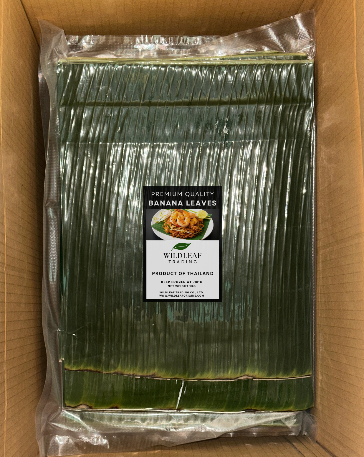 Vacuum-sealed, Frozen Premium Quality Banana Leaves stored at -18 degrees Celsius can stay fresh for up to 12 months. 1kg per pack, 10 kg per box.